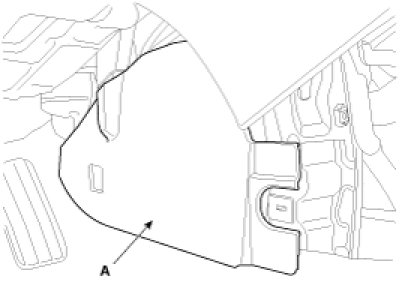 5. After loosening the console mounting screws, remove the floor console assembly (A).