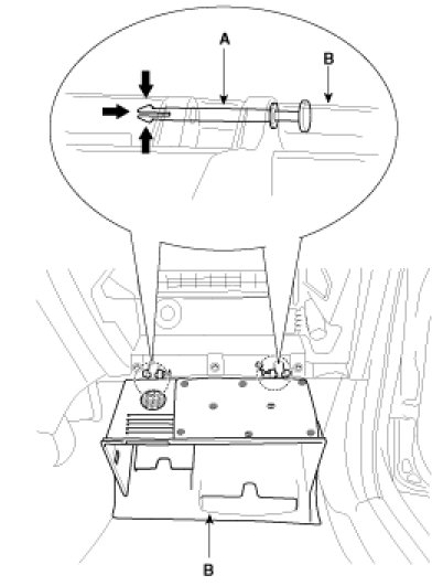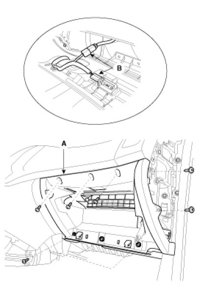 3. Disconnect the pine (A), then remove the glove box (B).