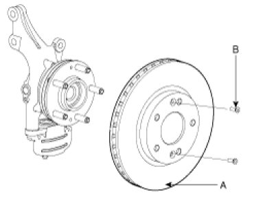 Remove the brake disc from hub using M8 bolt (A) if the brake disc has been seized with the hub due to corrosion or overheat.