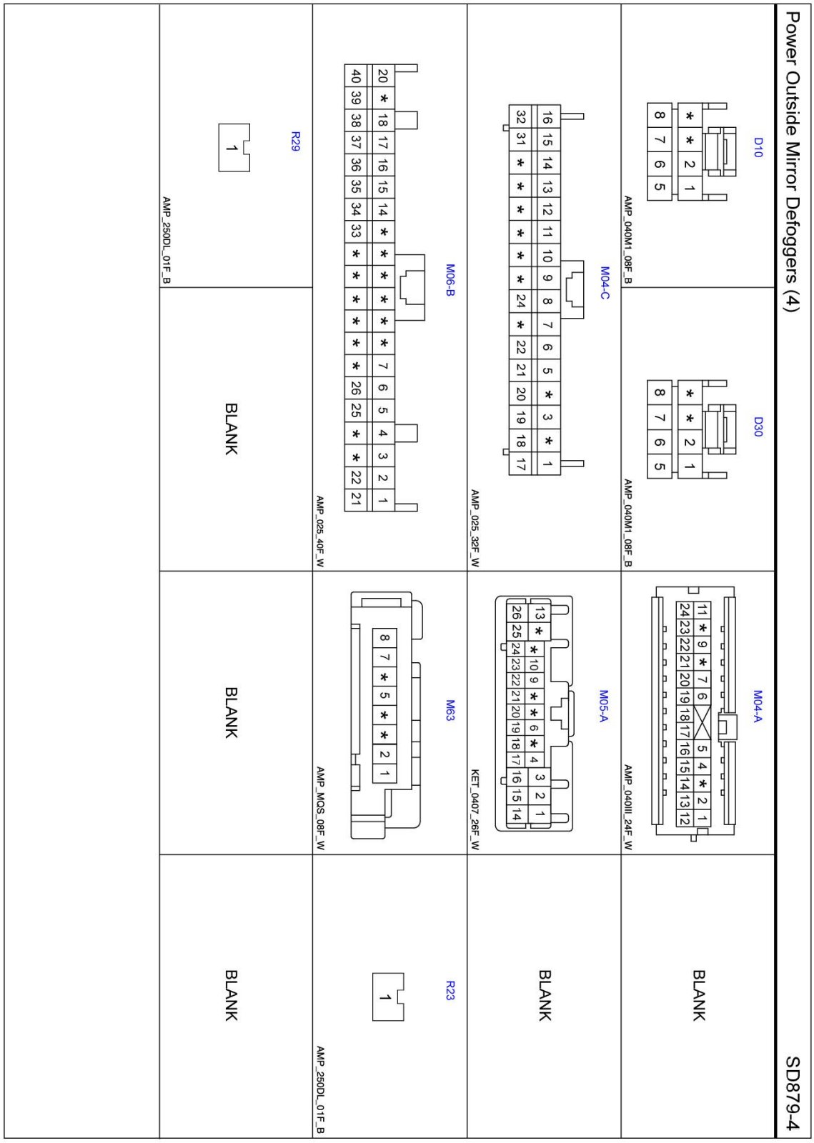 Power Outside Mirror Defoggers (4) Connector Pin Outs: