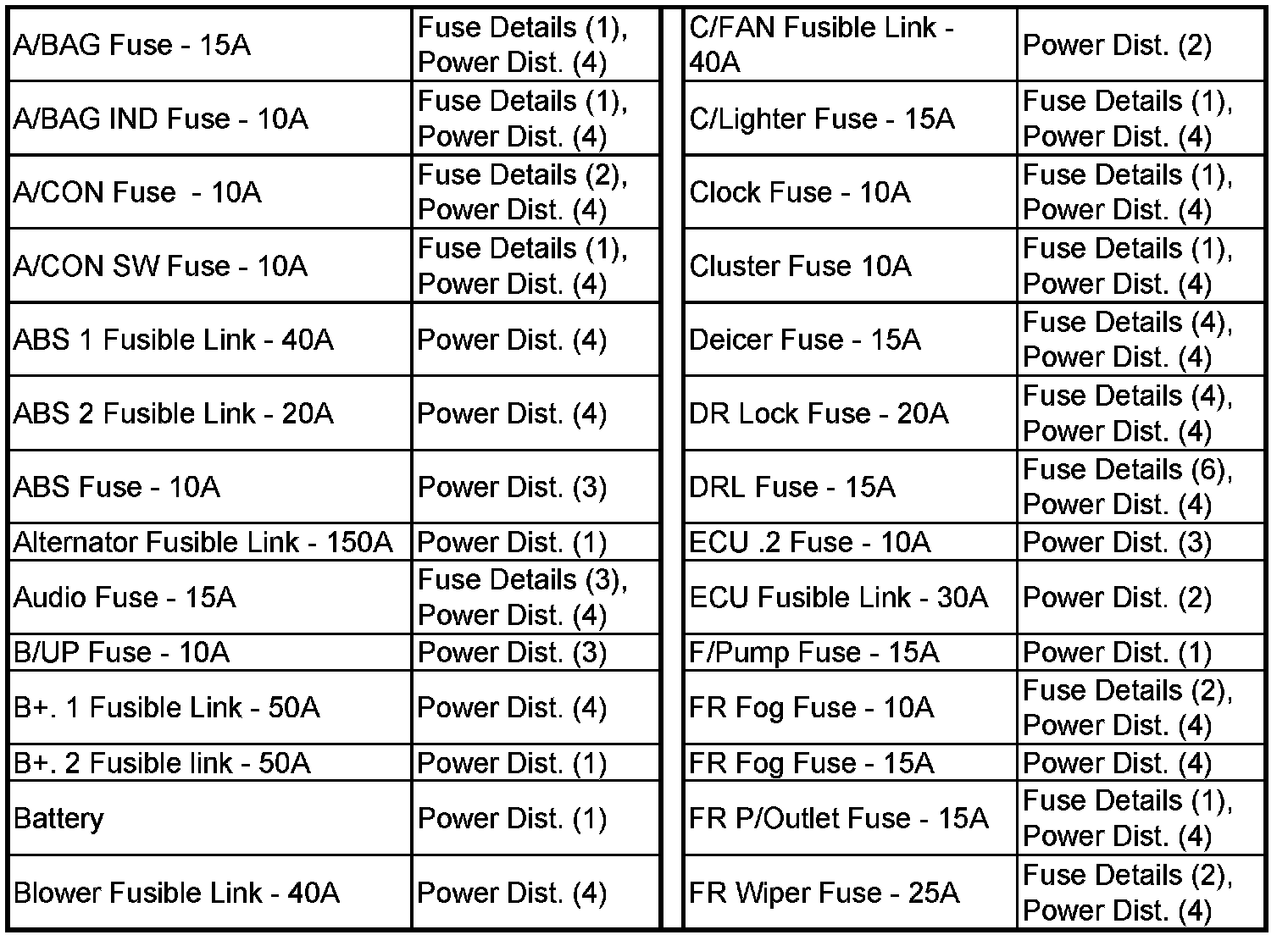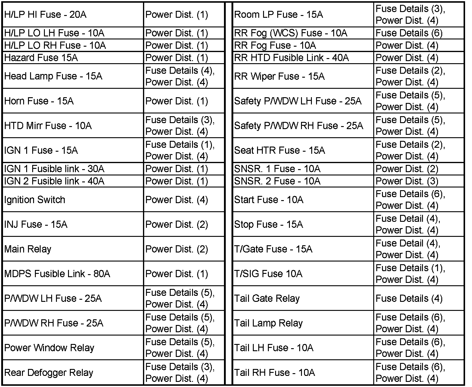Power Distribution and Passenger Compartment Fuse Details