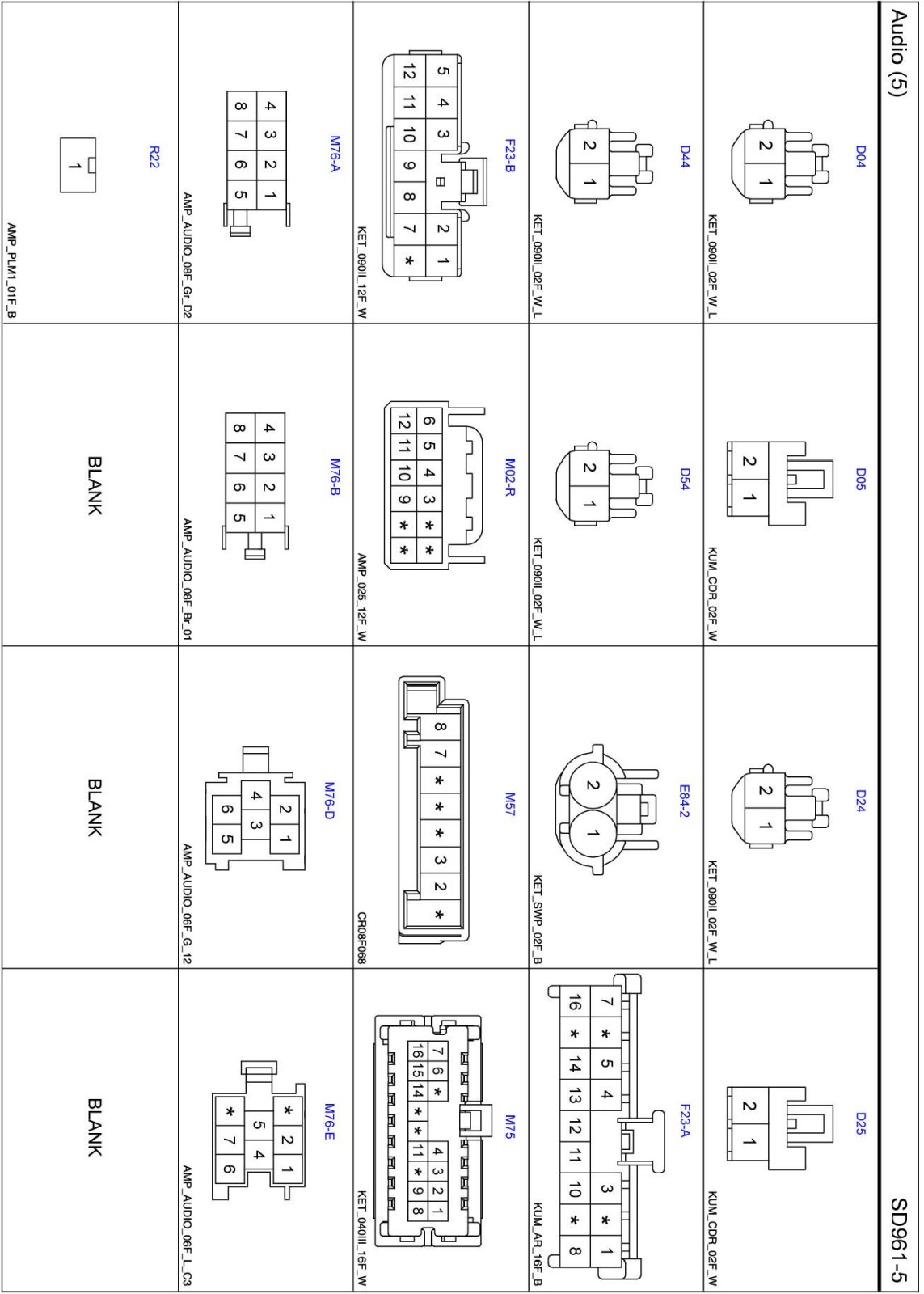 Audio (5) Connector Pin Outs: