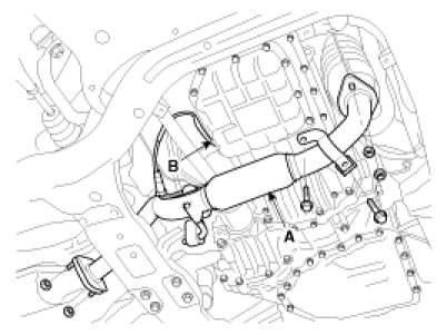 5. Remove the exhaust manifold and catalytic converter assembly(A).
