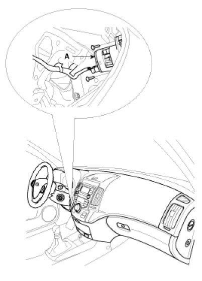 3. Disconnect the connector of in-car sensor (A).Loosen the mounting 2 screws and then remove the in-car sensor.