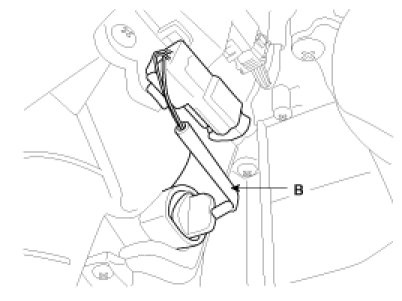 5. Remove the evaporator temperature sensor (B), by pulling it after rotating 90° in a counter clock wise direction.