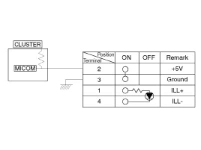 4. Check for continuity between the terminals in each switch position according to the table.