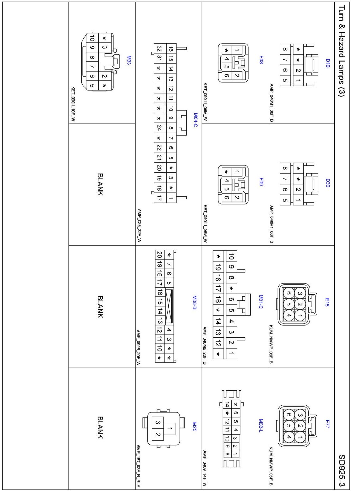 Turn & Hazard Lamps (3) Connector Pin Outs: