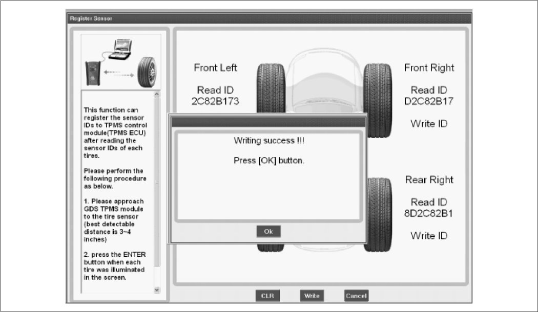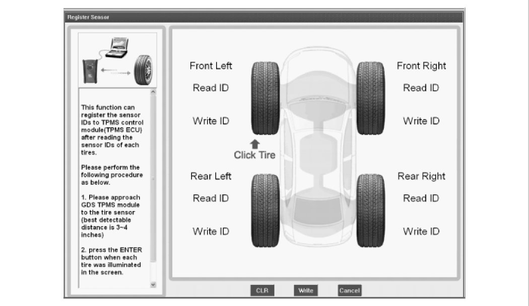 If the sensor registration procedure is not performed by GDS after replacing the TPM sensor or Receiver, TPMS is not operated.