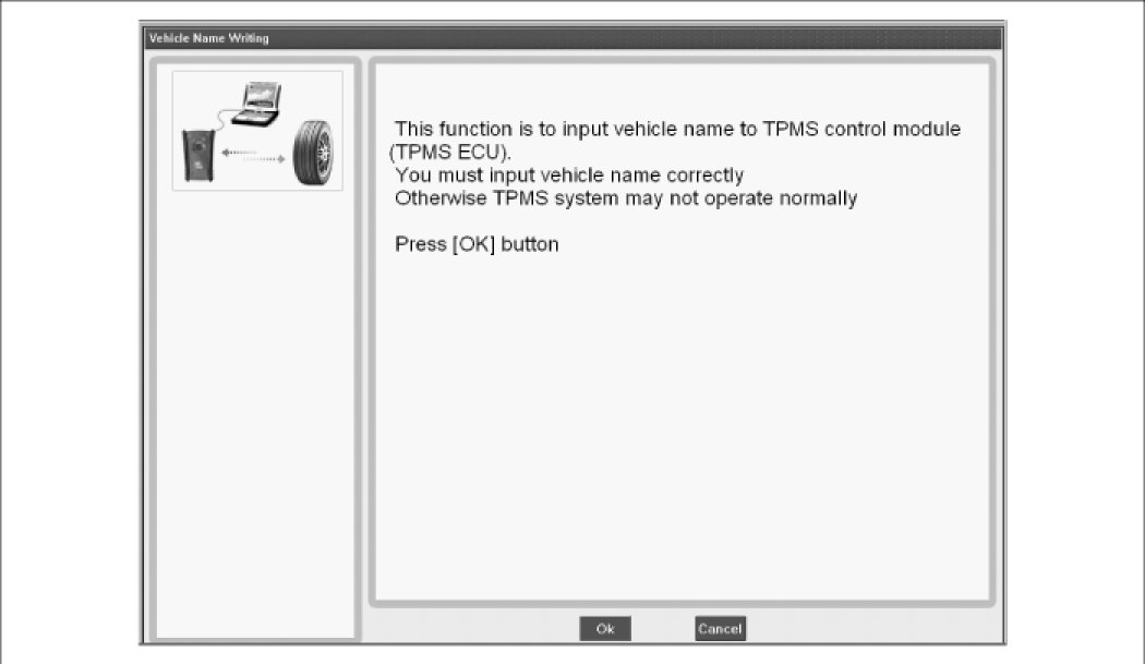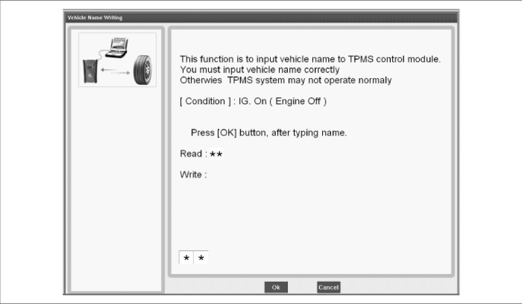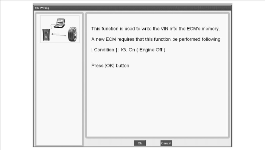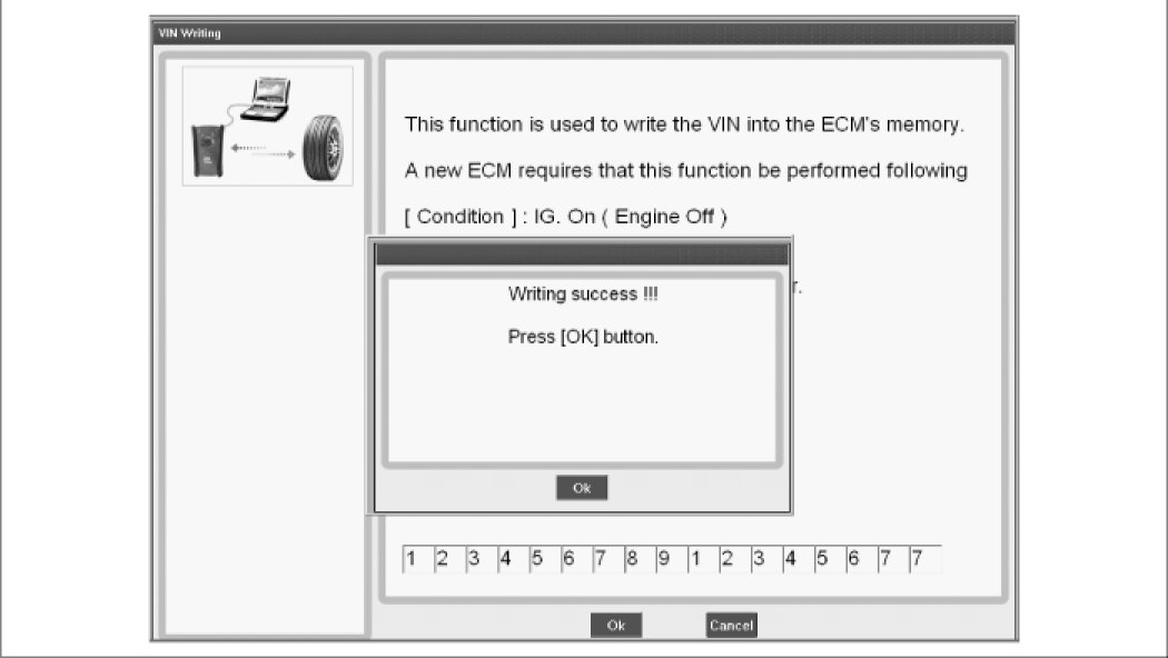 2. Select the model and perform the VIN and vehicle name writing procedure according to instruction of the GDS as follows.
