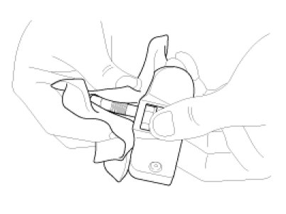 2. Clean the sensor and the valve stem holding the valve using a dry cloth as shown on the picture. Take care to support the rear of the valve with a thumb so that there is no movement of the stem.