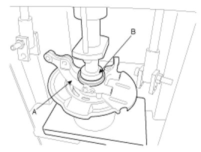 (3) Remove the hub assembly (B) from the knuckle assembly (A) by using press.