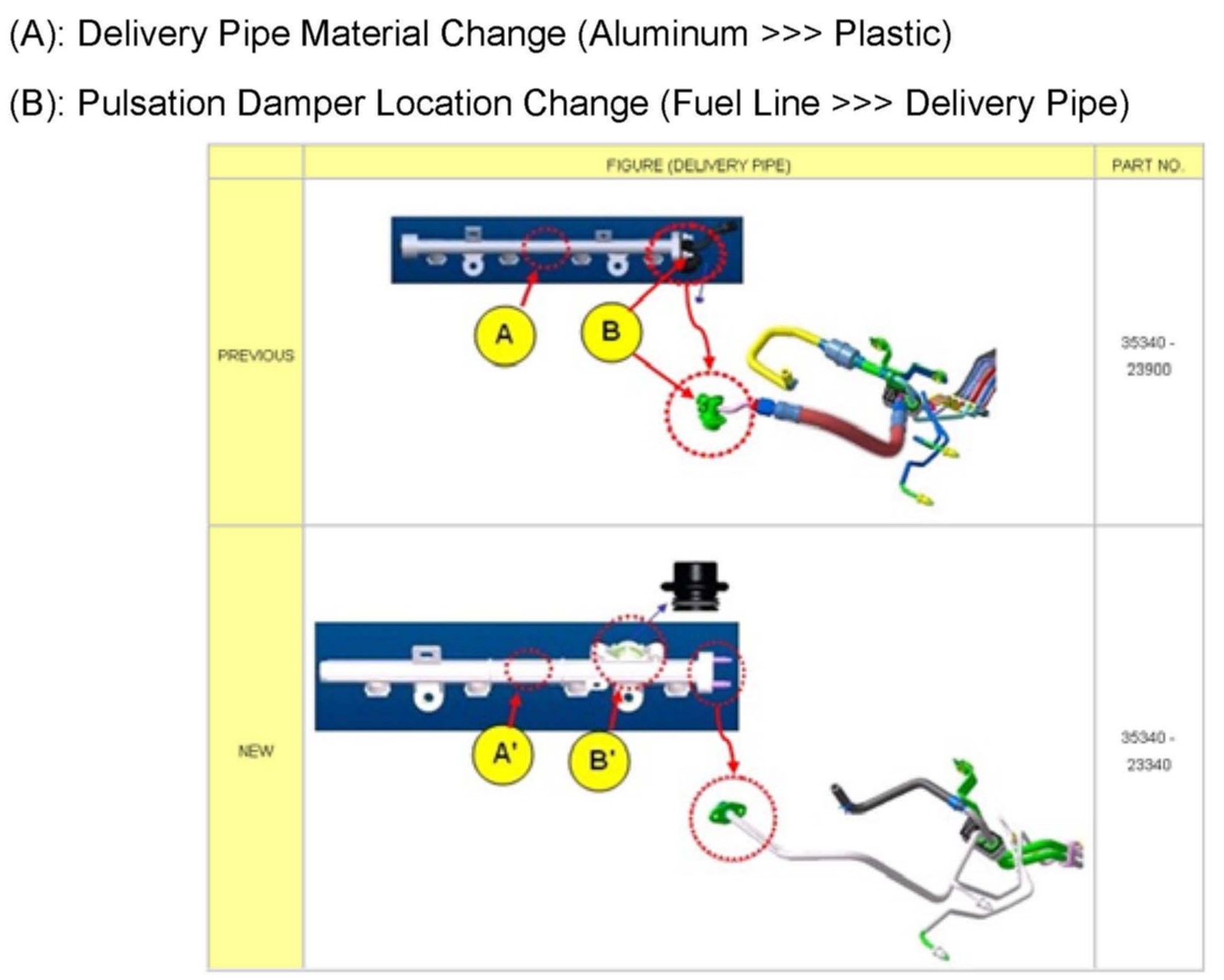 FUEL DELIVERY PIPE PART NUMBER CHANGE INFORMATION