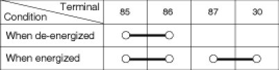 (A) and check continuity between the terminals. If the continuity is not as specified, replace the relay.