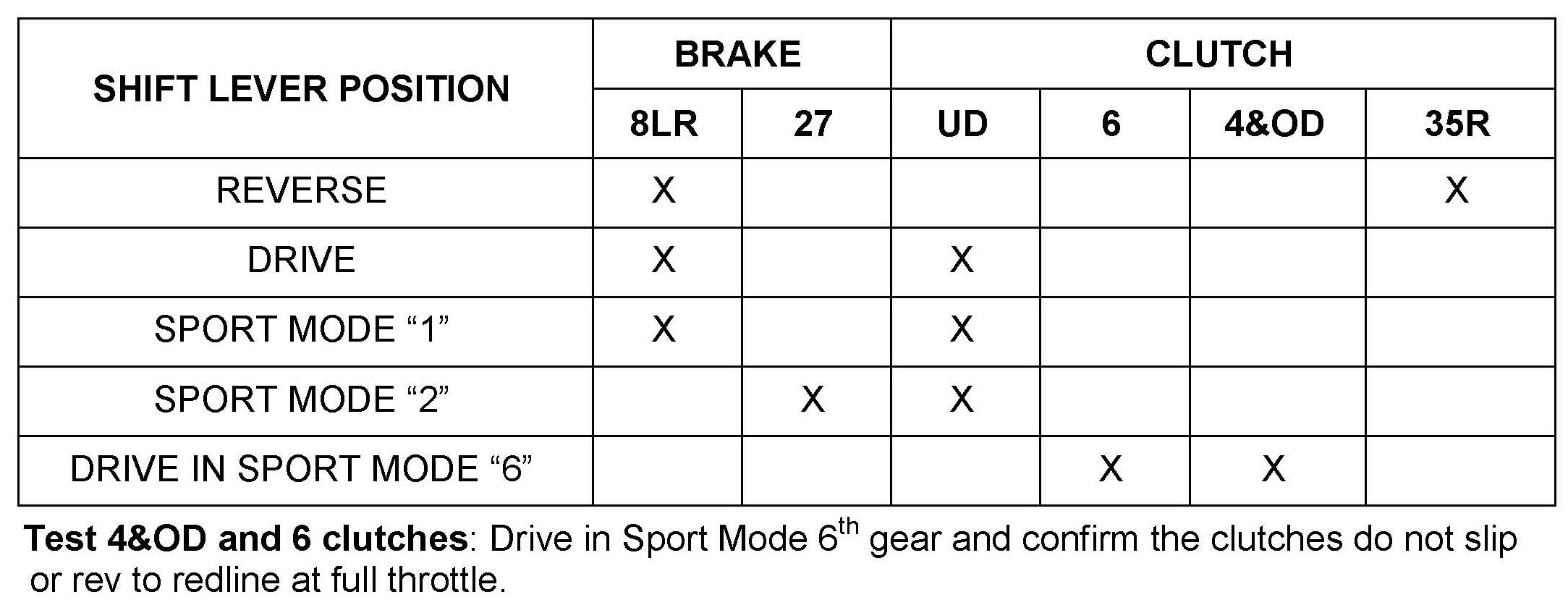 10. 6-SPEED ATM: 2007 Veracruz 3.8L: Perform a stall test in the following gears