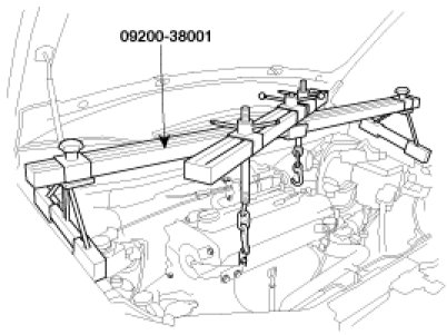 9. Using the special tool (09200-38001), support the engine assembly safely.