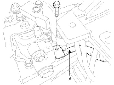 18. Install the ground cable (A) to transaxle.