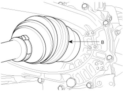 4. Connect the drive shafts (A,B) to the transaxle.