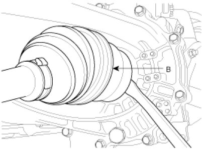 20. Disconnect the drive shafts (A,B) from the transaxle.