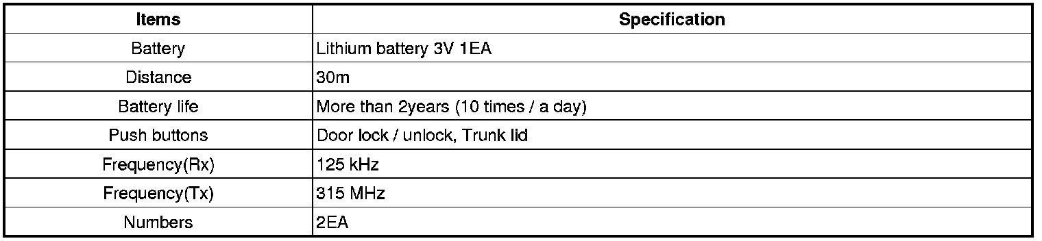 Keyless Starting System: Specifications