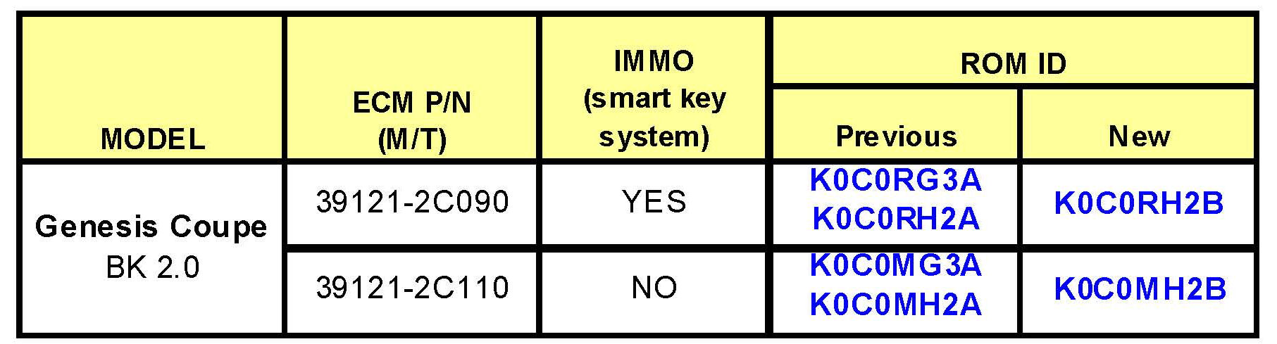 Model: 2010 GENESIS COUPE (BK) 2.0L vehicles.