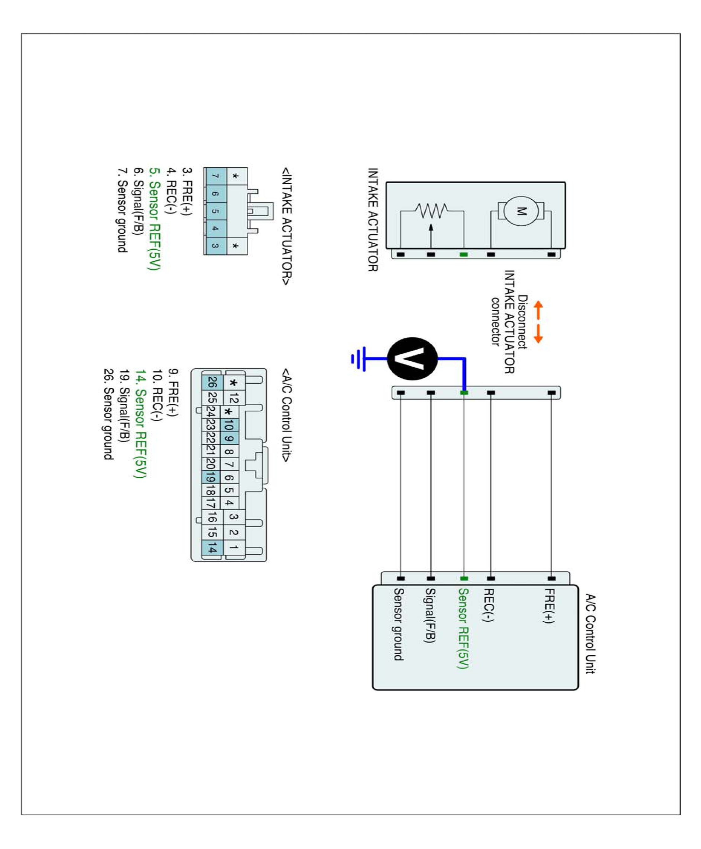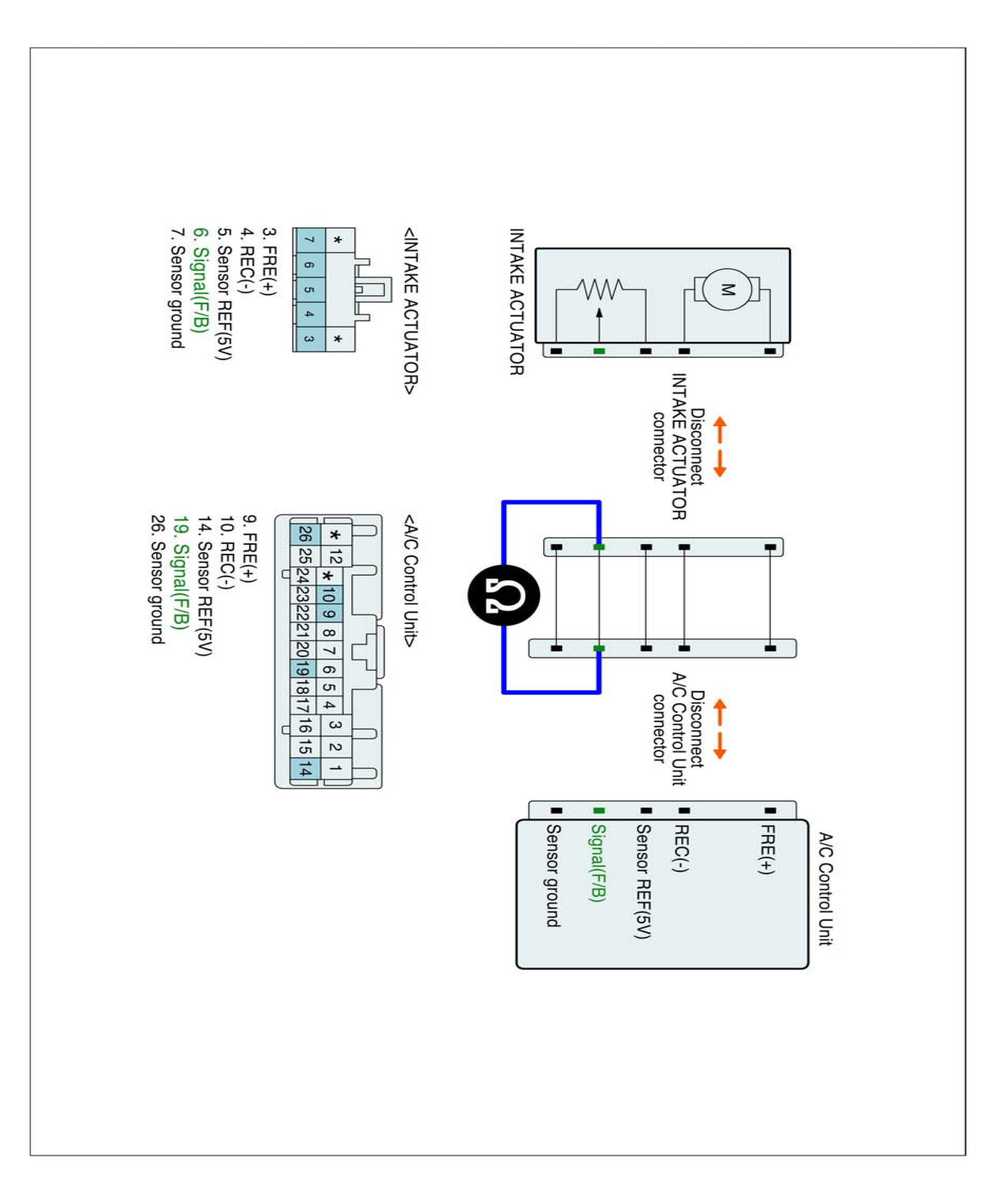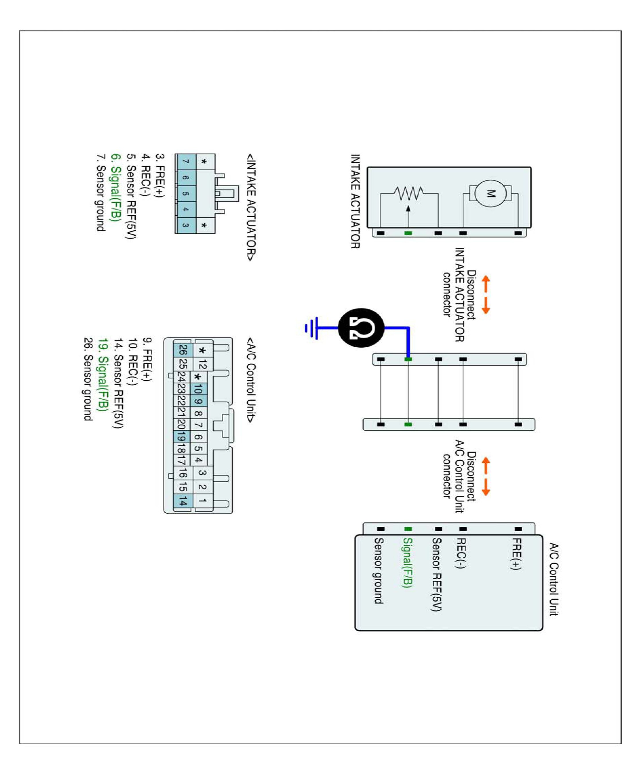 2. Disconnect Intake actuator and Connect A/C control unit main harness connector.