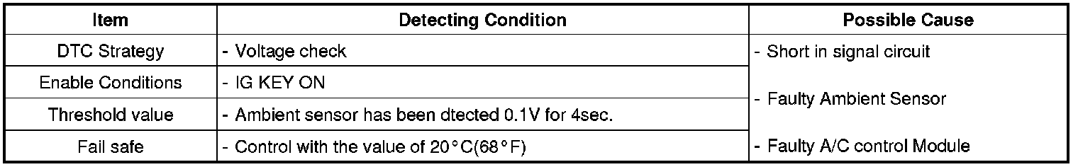 Air conditioner Control Module sets DTC B1237 if Ambient sensor has been detected below 0.1 V for 4 sec.