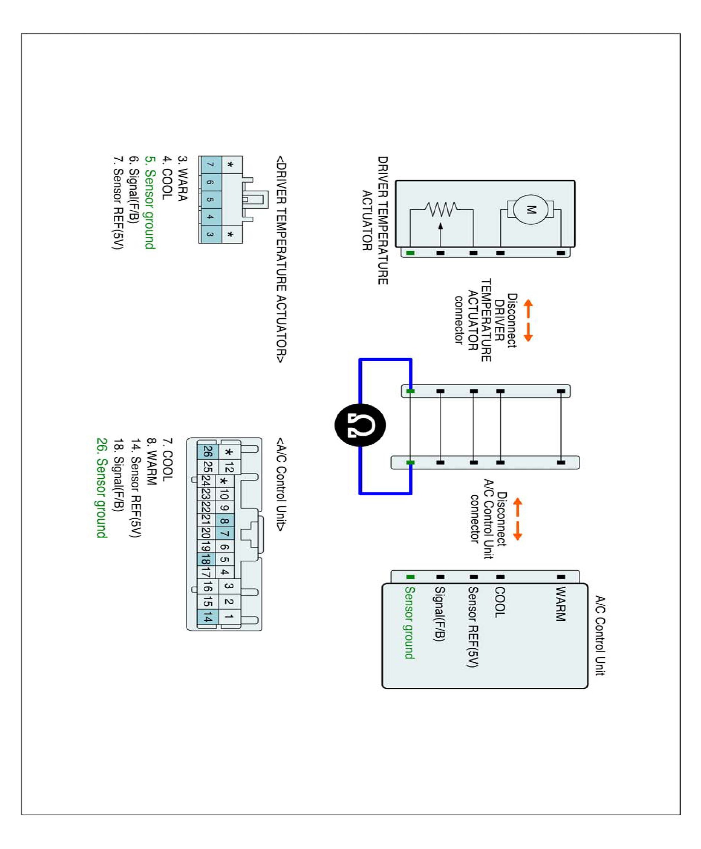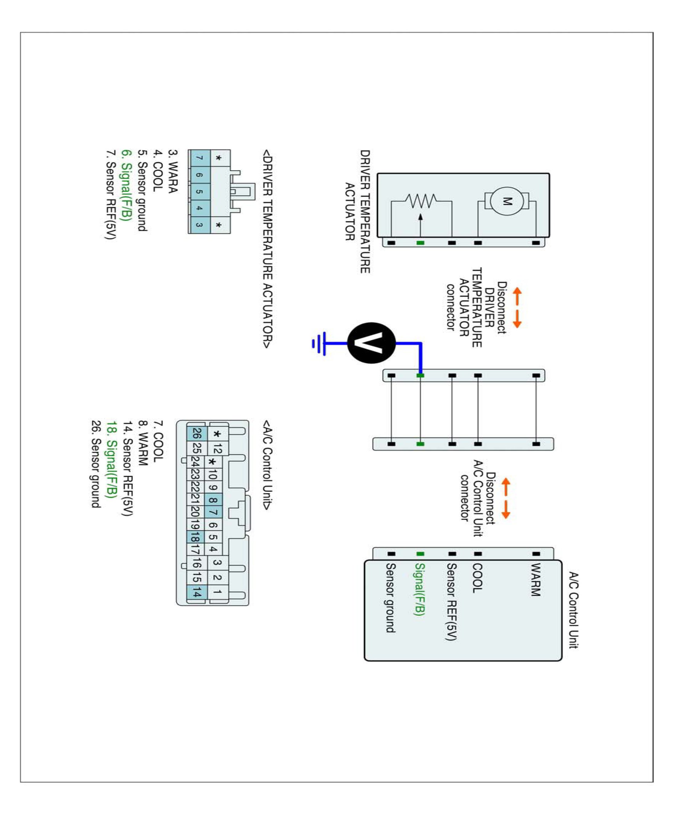 2. Disconnect Driver air mix actuator and A/C control unit main harness connector.