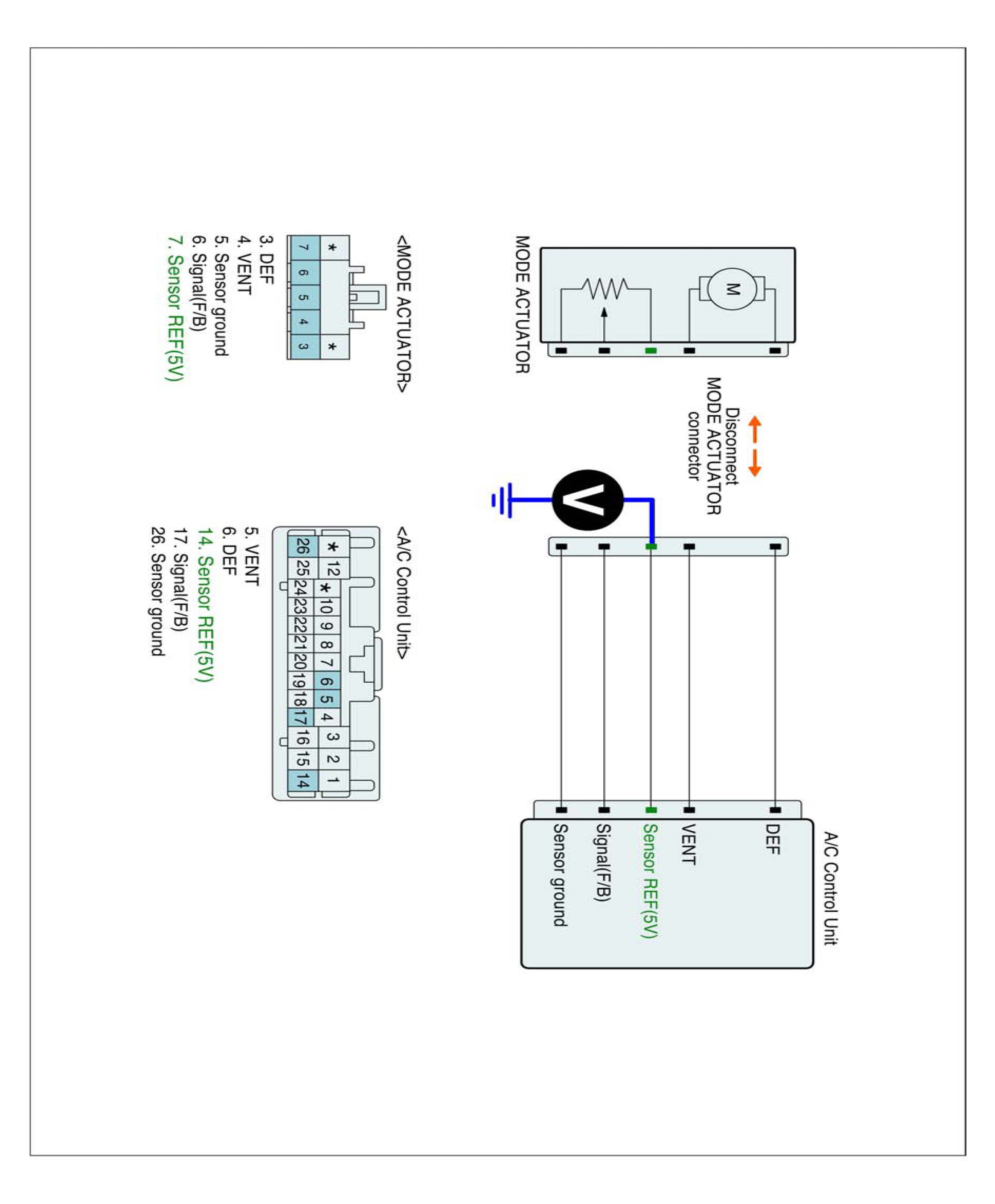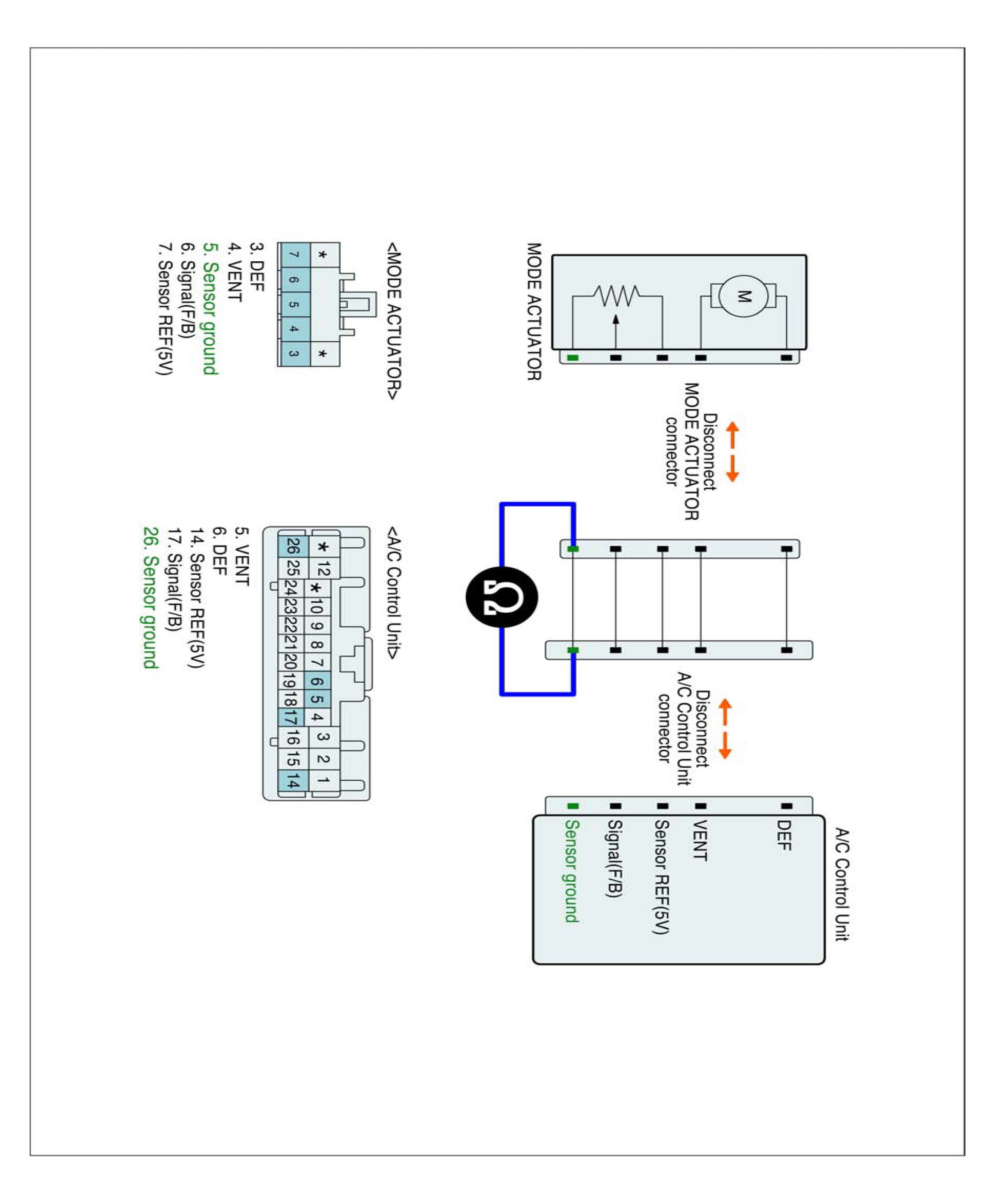 2. Disconnect Driver Direction actuator and Connect A/C control unit main harness connector.