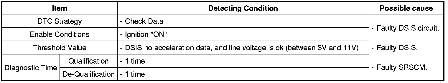 The SRSCM sets DTC B1409 if there is any error in communication between DSIS and SRSCM.