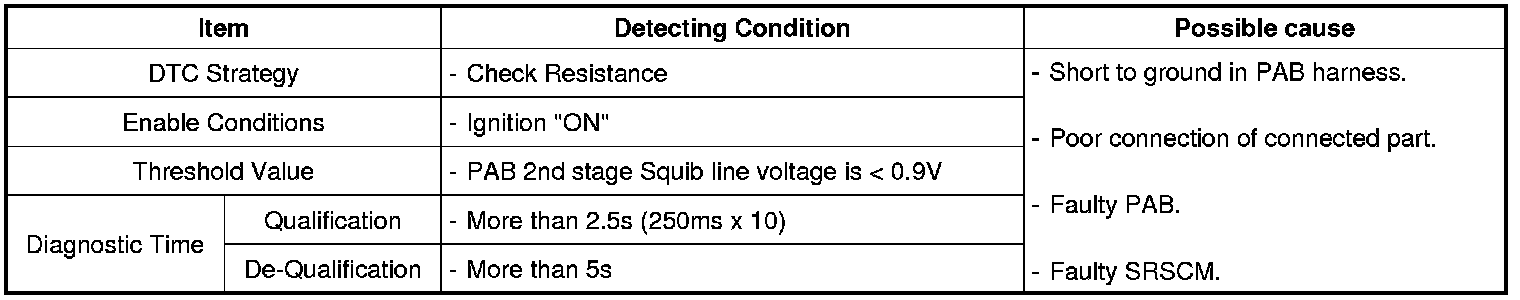 The SRSCM sets DTC B1487 if there is a short to ground in PAB harness