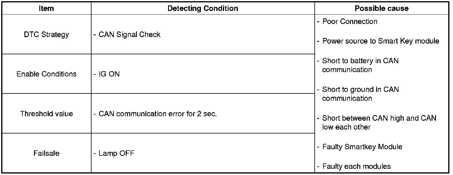 DTC B1602 is set if Smartkey Module detects that CAN HIGH or CAN LOW is short to battery, short to ground, open and short between CAN High and CAN Low each other.