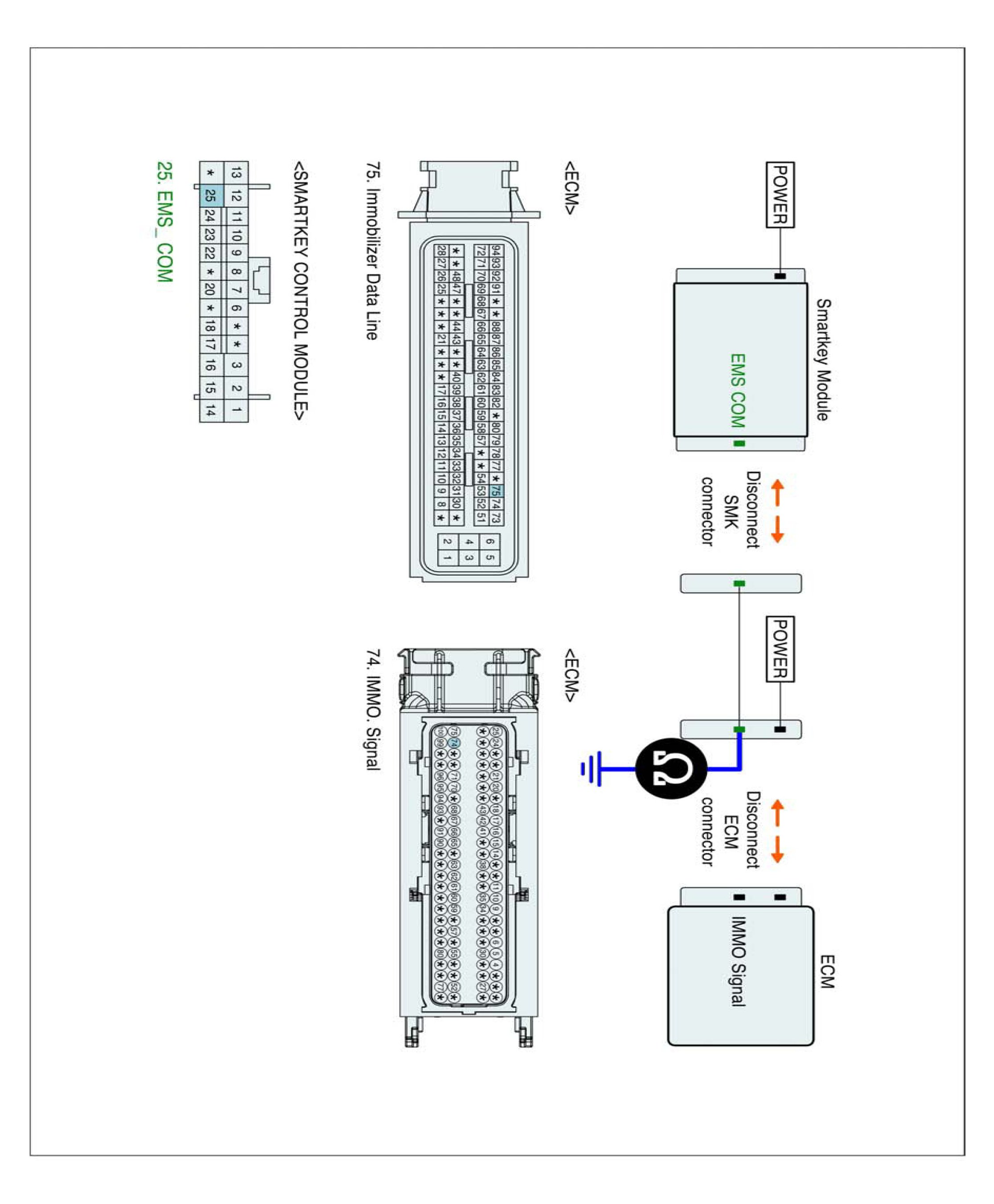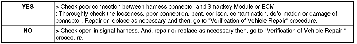 3. Measure resistance between signal terminal of Smartkey Module harness connector and signal terminal of ECM harness connector.
