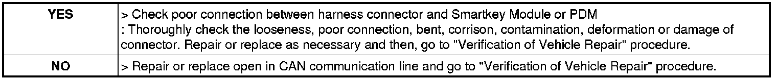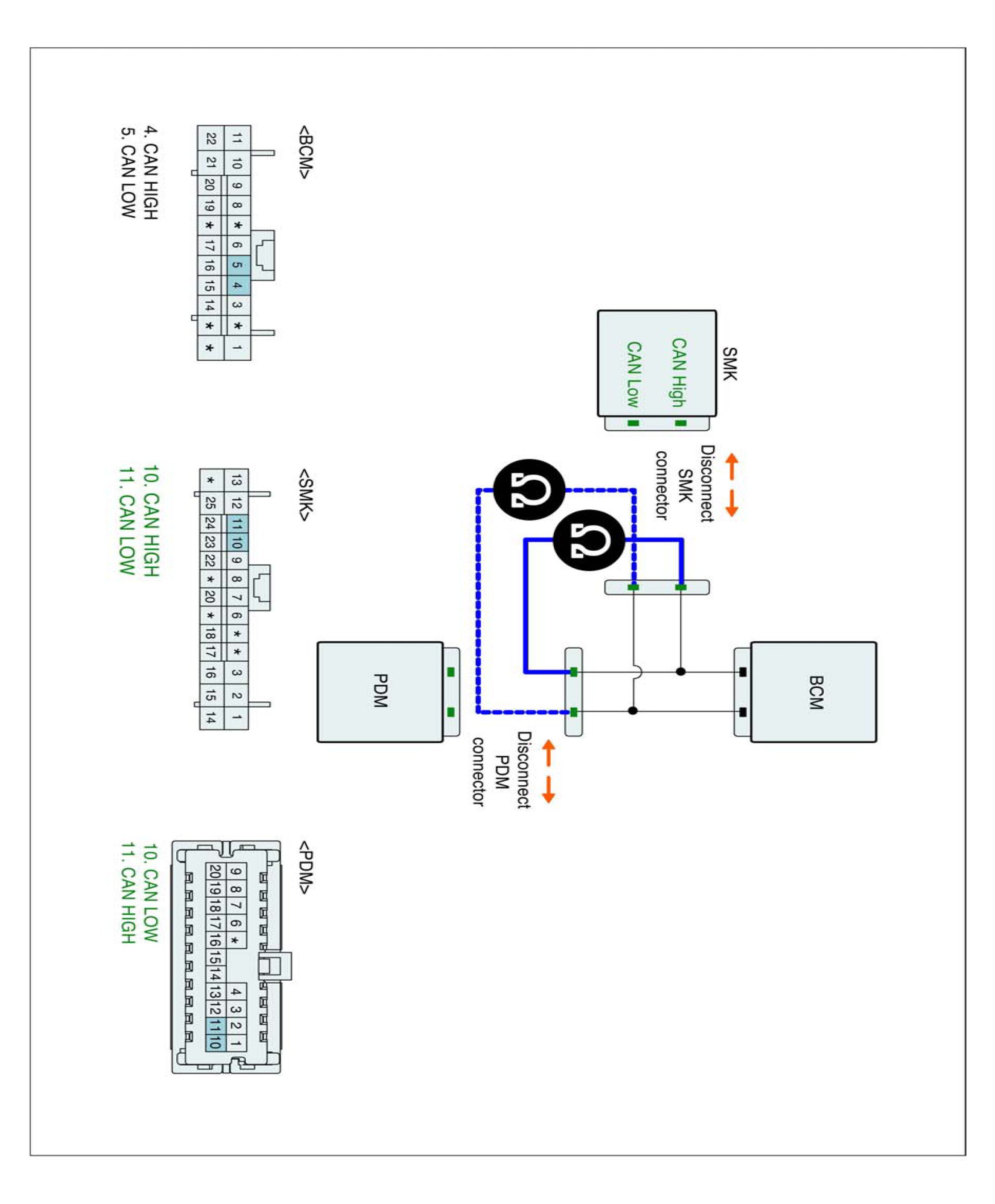 3. Measure resistance between communication line terminal of Smartkey Module connector and communication line of PDM harness connector.