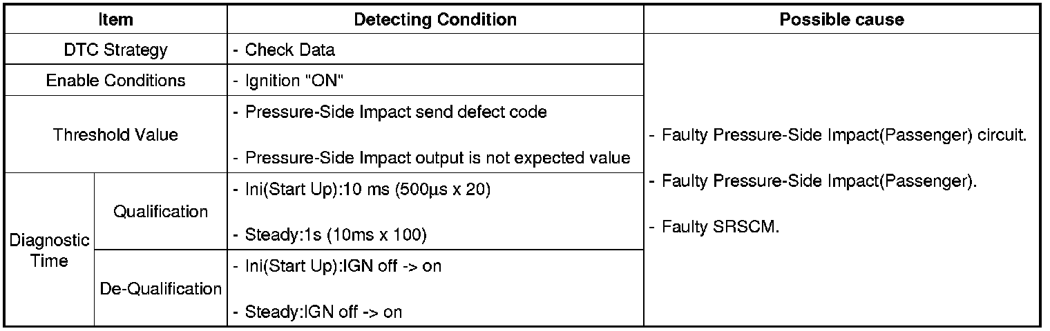 The SRSCM sets DTC B1745 if there is any fault in Pressure-Side Impact (Passenger) circuit.