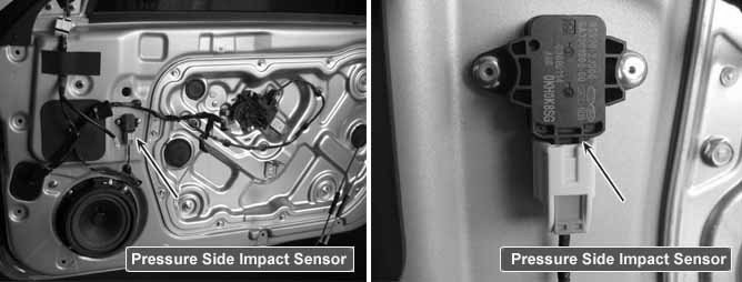 Pressure-Side Impact Sensor and Side Impact Sensor are installed in the left and the right side of front door and in the lower of B-pillar respectively.
