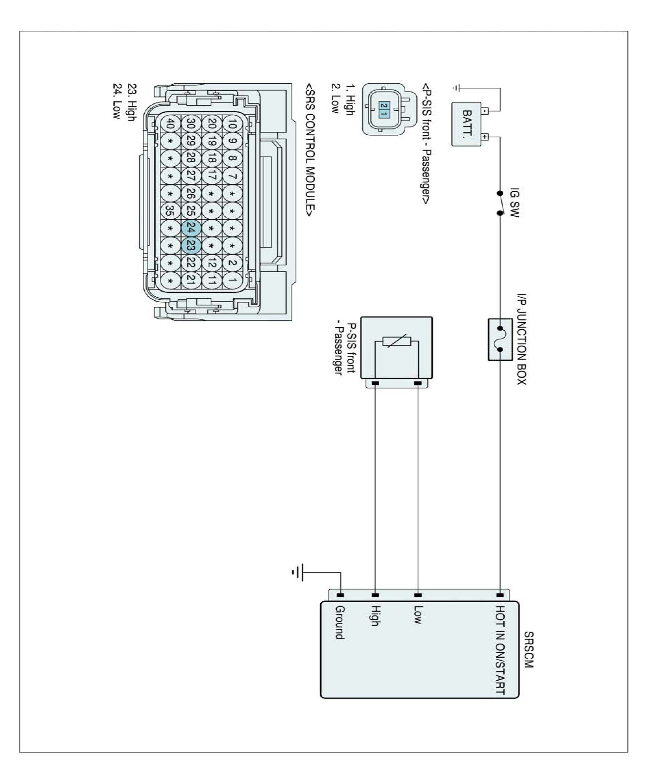 The SCM detects the impact signals of the Pressure-Side Impact Sensor and Rear Side Impact Sensor and compares with signals of the safe sensor inside. If the signals of all sensors are judged as a collision, the side-airbag and the curtain-airbag would be unfolded.