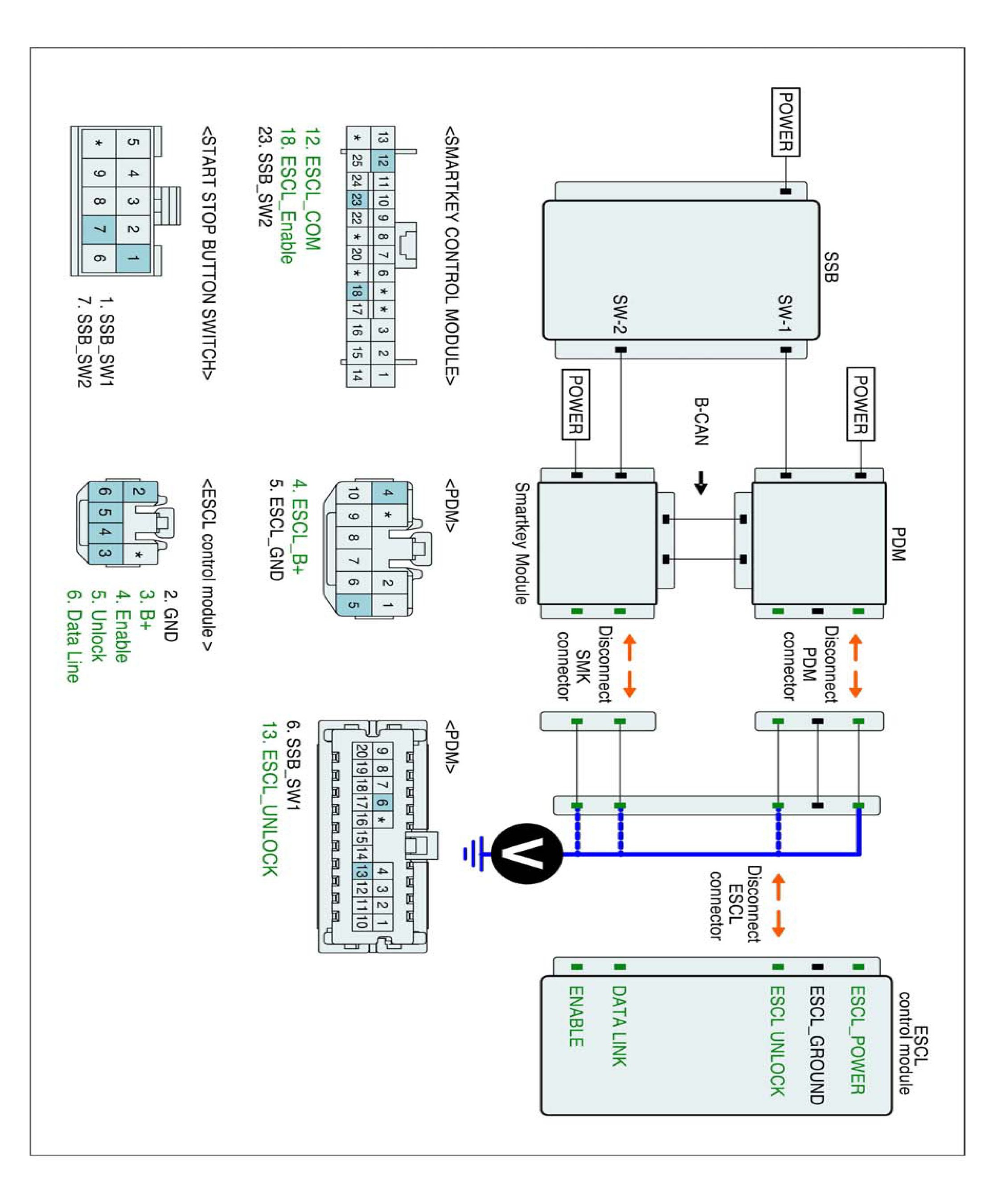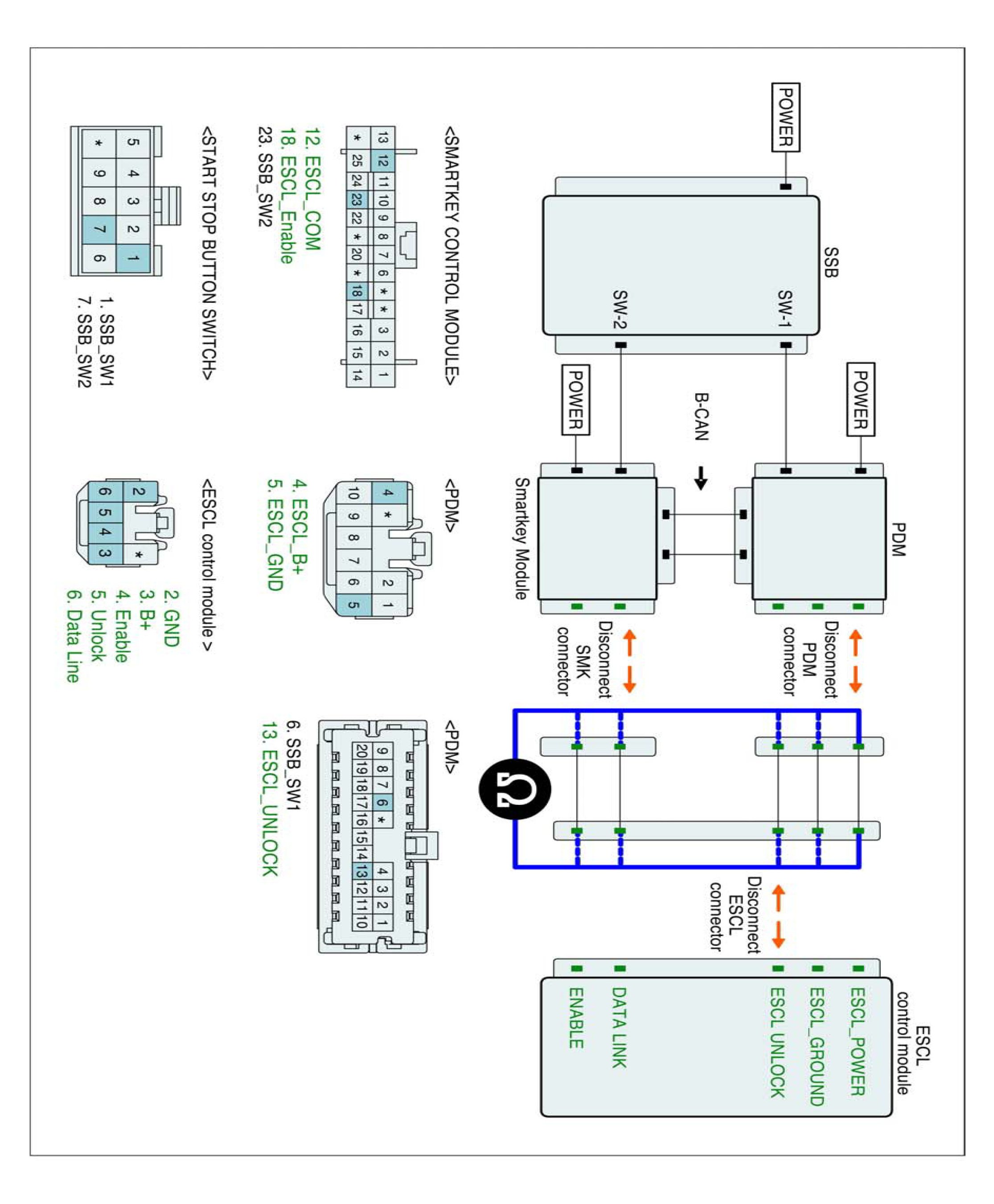 2. Disconnect ESCL control Module, PDM and Smartkey Module connector.