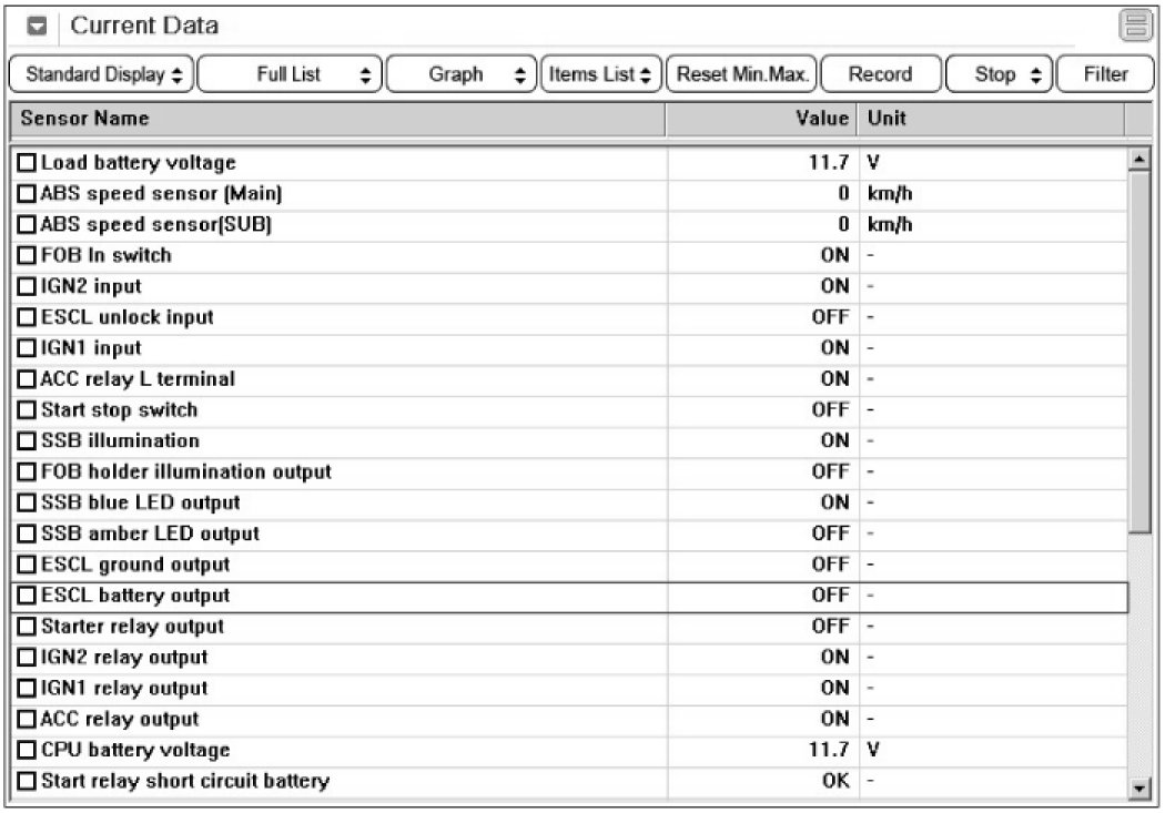 2. IG "ON" and select "Current Data" menu.