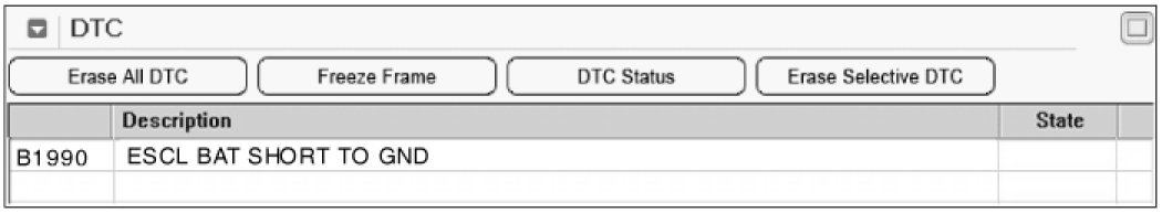 Power Distribution Module - B1990 ESCL Battery Short Circuit To Ground - Scantool Diagnostics