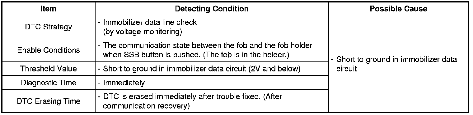 This code is outputted when the immobilizer data circuit is shorted to ground.