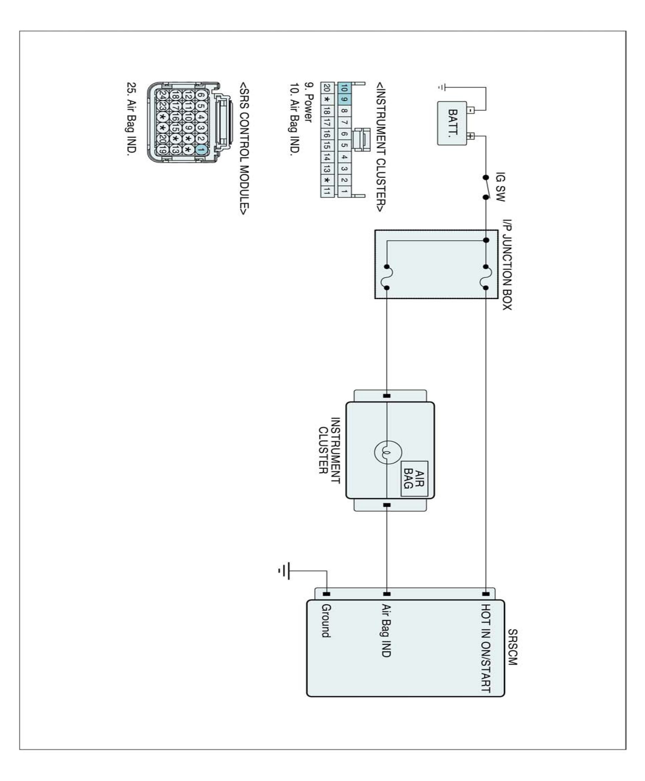 When key is in 'ignition on' position, SRSCM performs diagnosis of overall air bag system.If there's no fault, air bag.