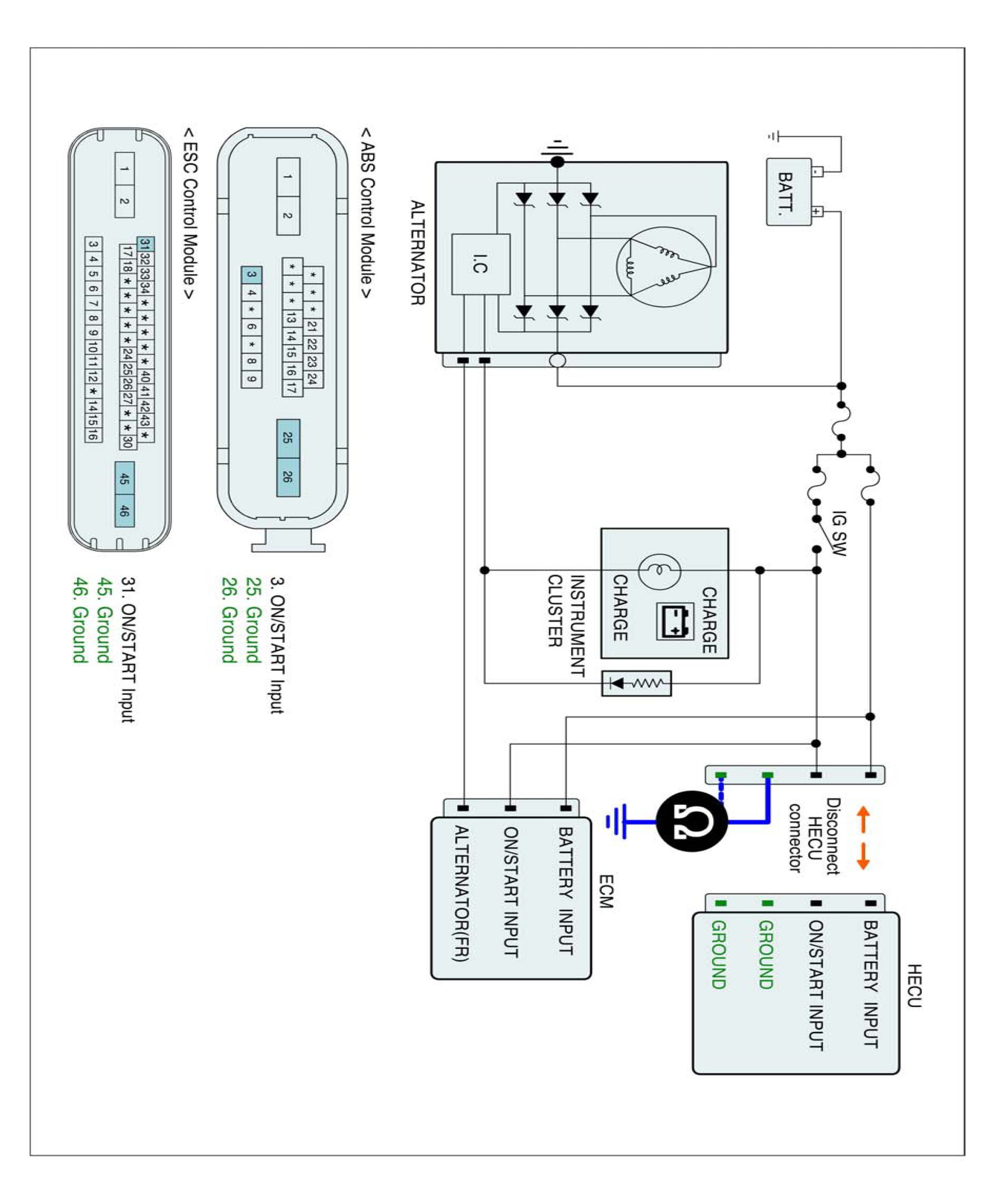 3. Measure resistance between ground terminal of the HECU harness connector and chassis ground.