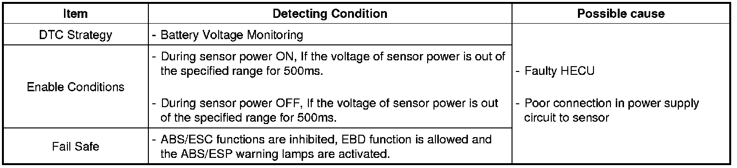 The HECU monitors supply voltage of each sensor for normal ESC control.