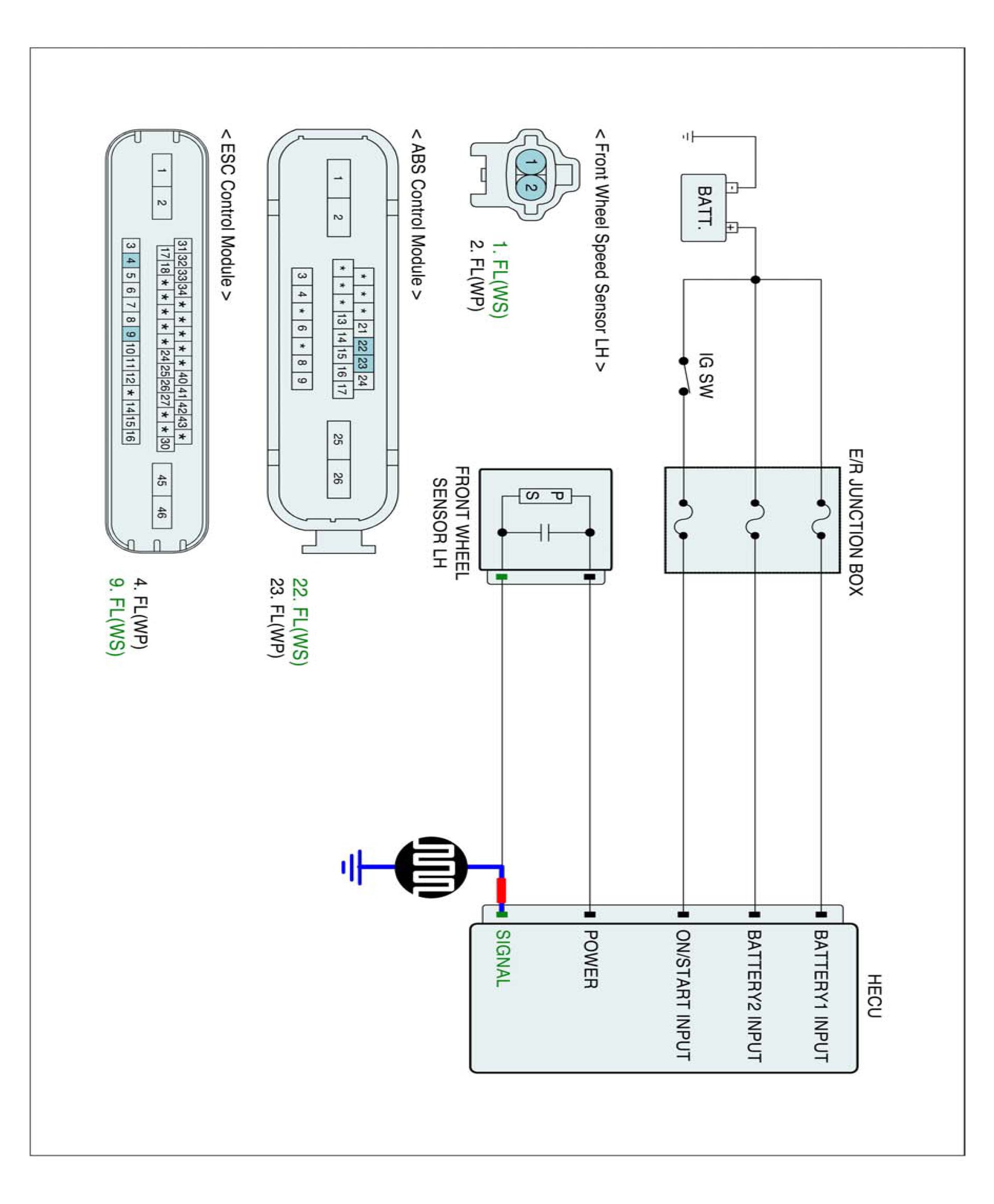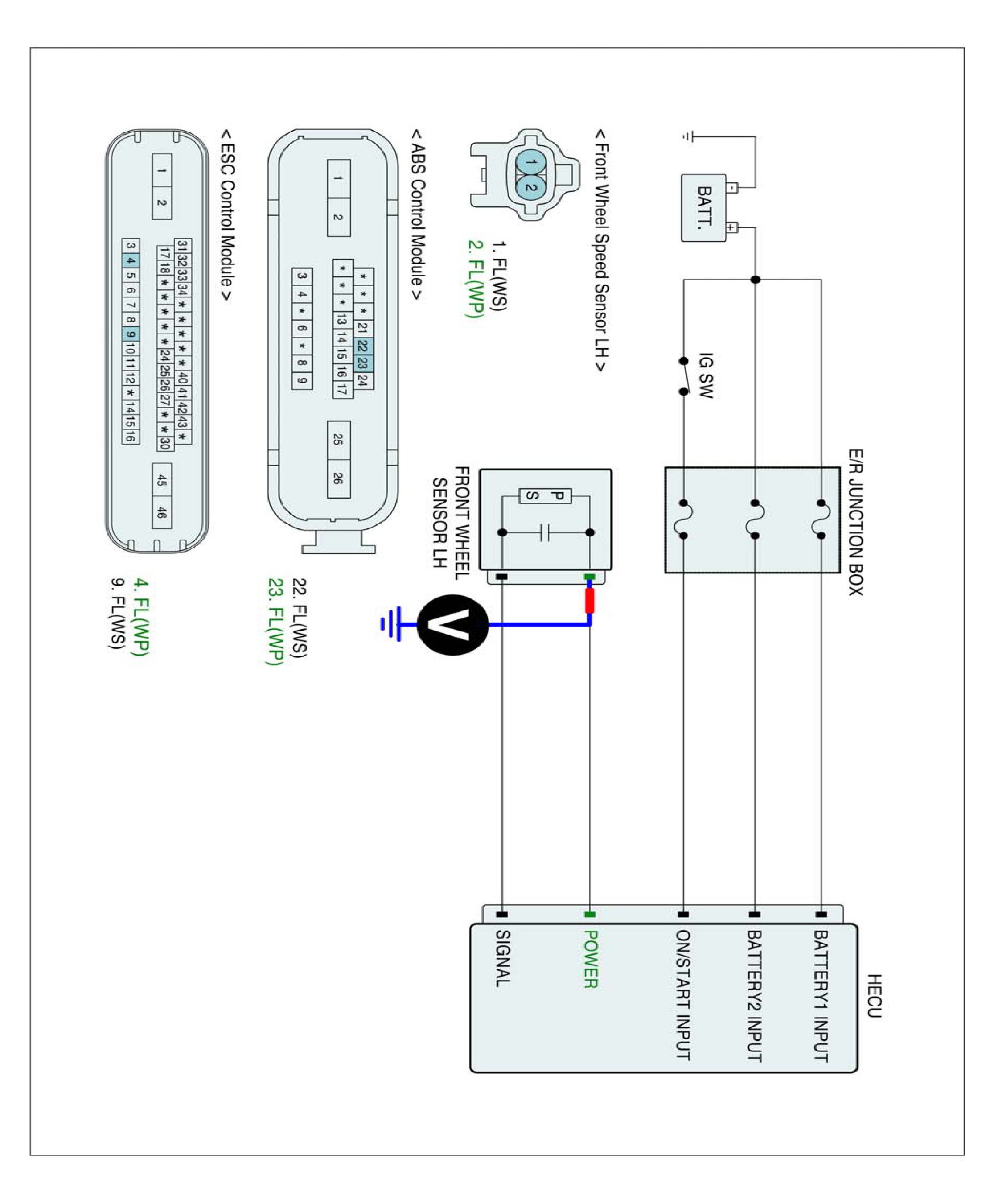 4. Measure waveform between wheel speed sensor signal terminal of the HECU harness connector and chassis ground with oscilloscope.
