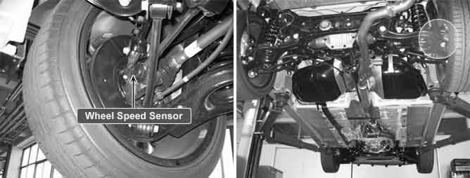 The wheel speed sensor is the essential component the ABS ECU uses to calculate vehicle speed and to determine whether wheel lock occurs.
