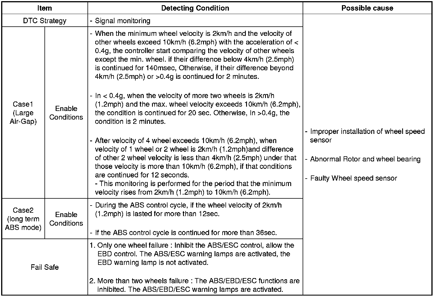 This code is set when the sensor air gap is out of specified range or when the ABS control cycle is continued abnormally.