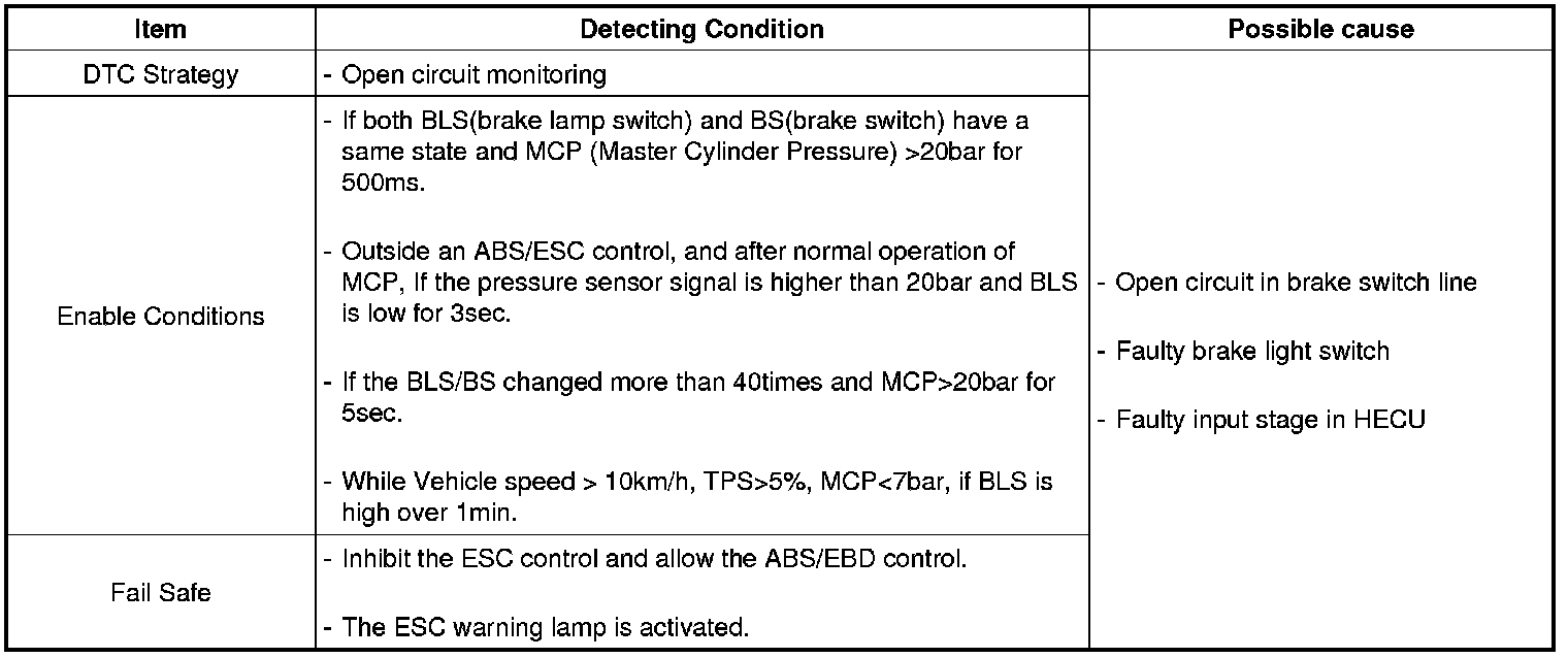The HECU checks open or short circuit of brake light switch for normal ESC control.