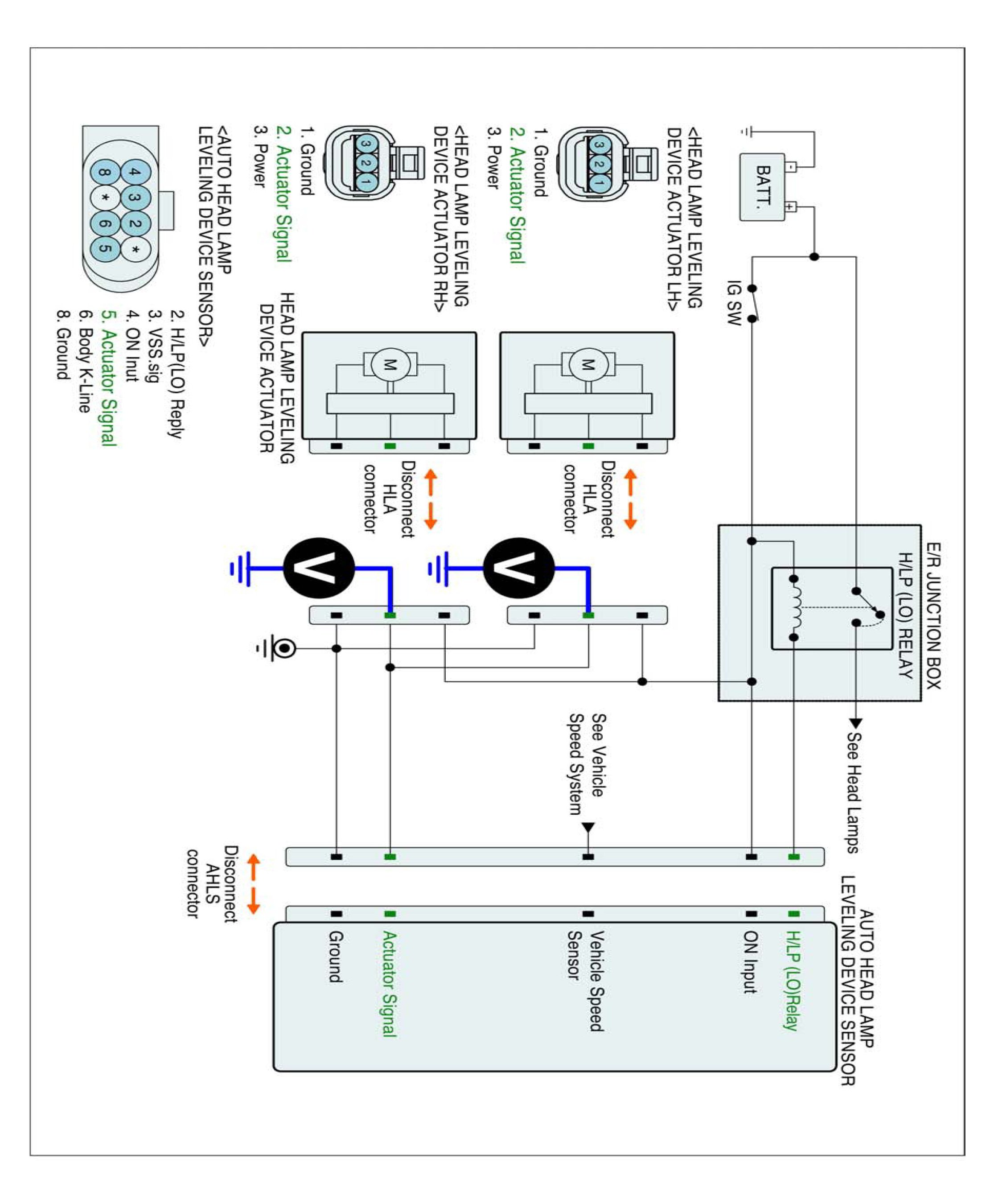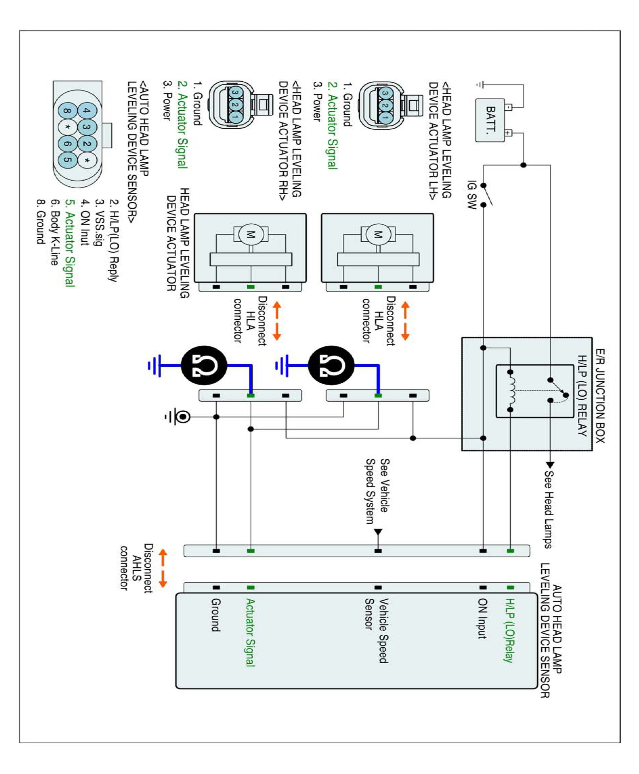 2. Disconnect AHLS-ECM and leveling actuator (LH/RH) harness connector.