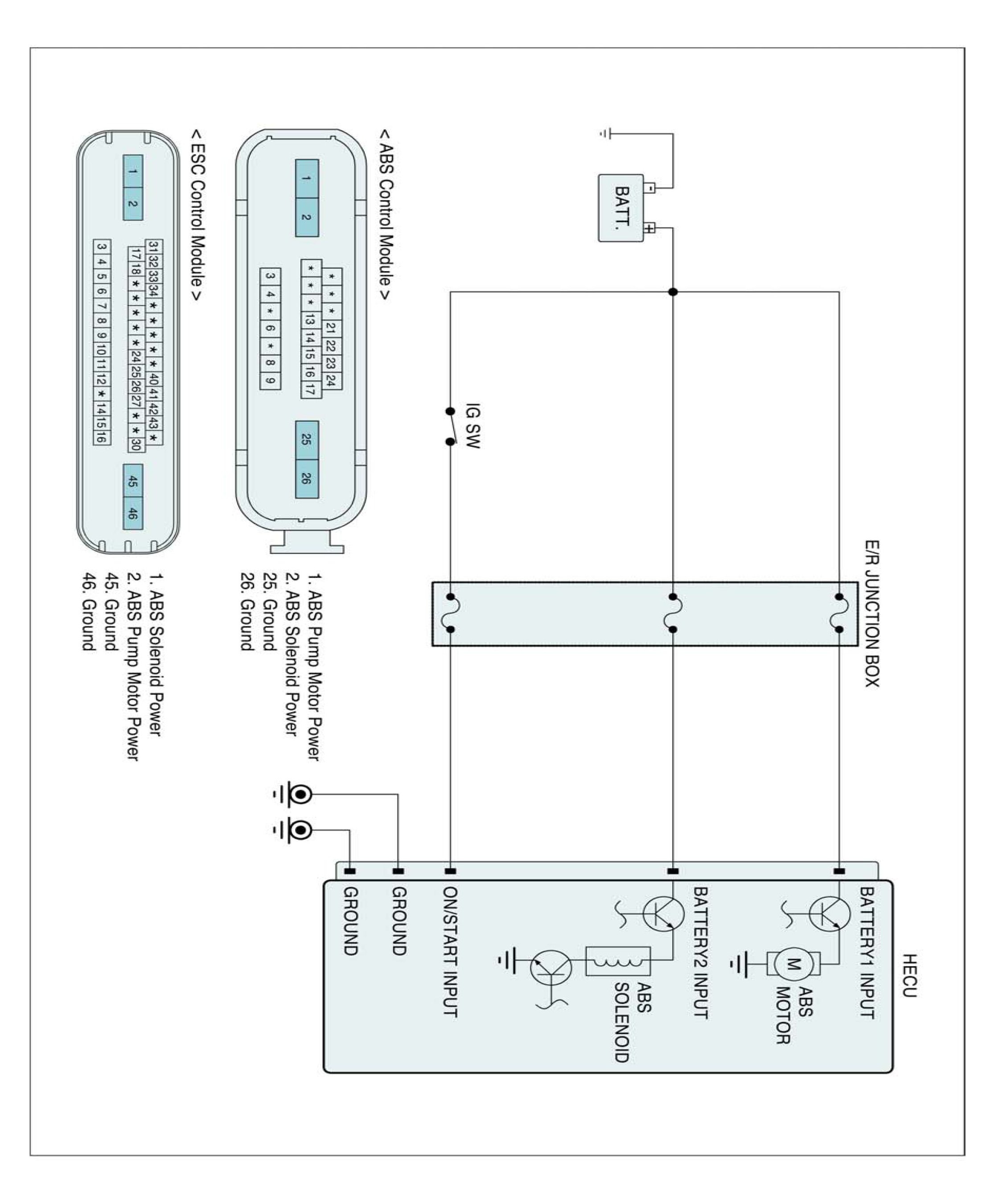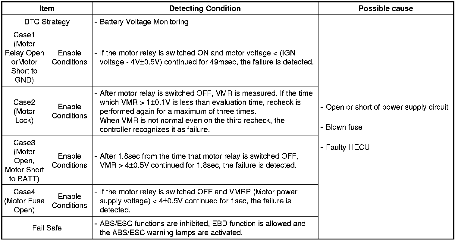 The ABS ECU supplies battery power to the electric motor by way of a motor relay which is controlled by the Electronic Control Unit (ECU).