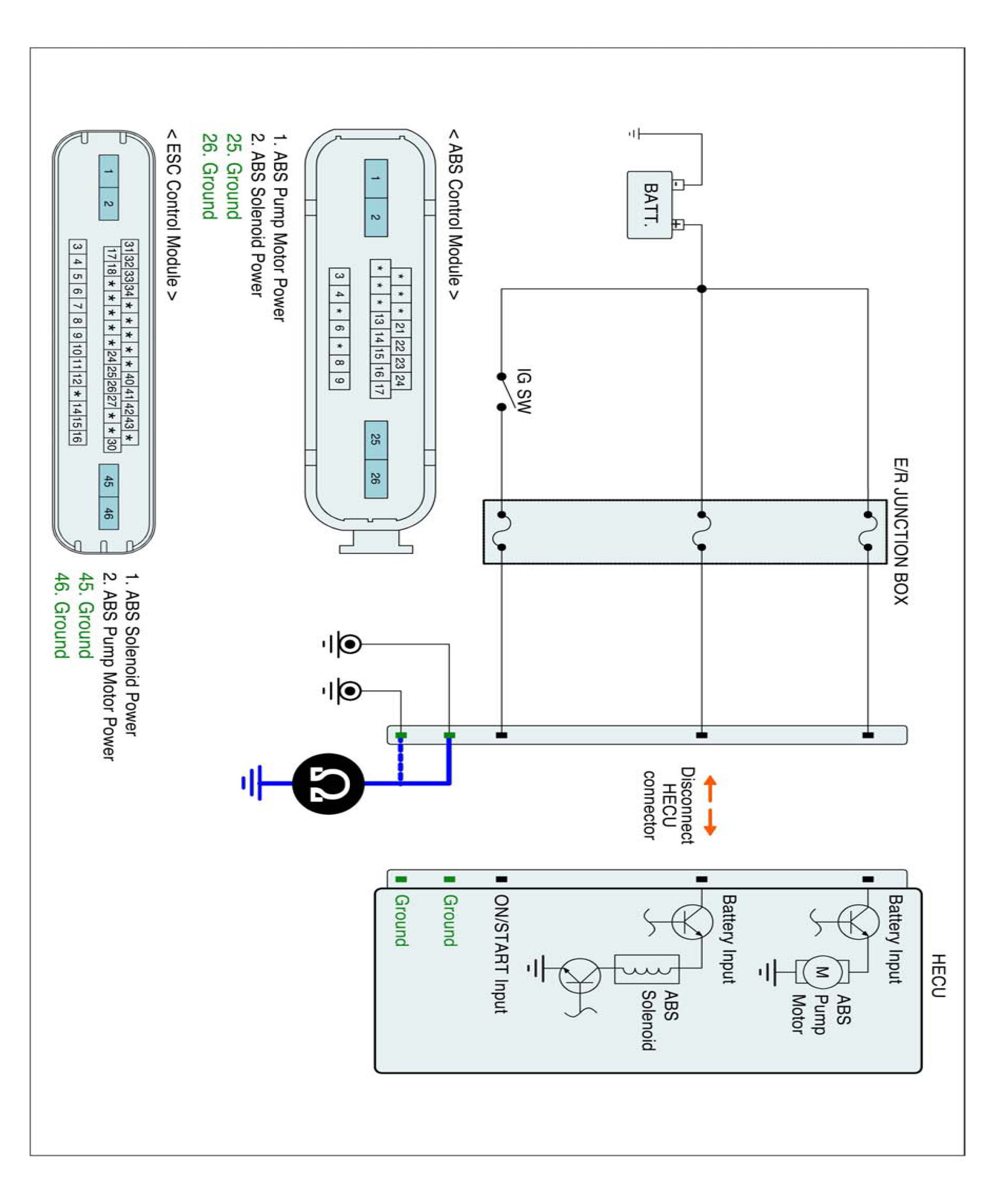 3. Measure resistance between ground terminal of the HECU harness connector and chassis ground.